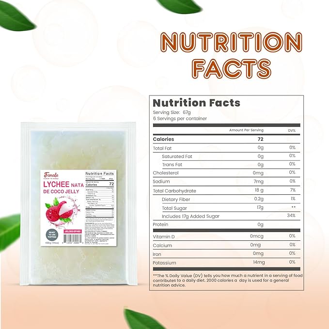 - šš°ššš šš§š šš±šØšš¢š š š„ššÆšØš«: Each Fanale coconut jelly boba tea variety is infused with sweet and exotic flavors that complement a range of recipes. This nata de coco jelly topping includes strawberry, lychee, blueberry, mango, sakura, green apple, coconut, rainbow, and coffee flavors, adding a distinct and delightful twist to your creations.