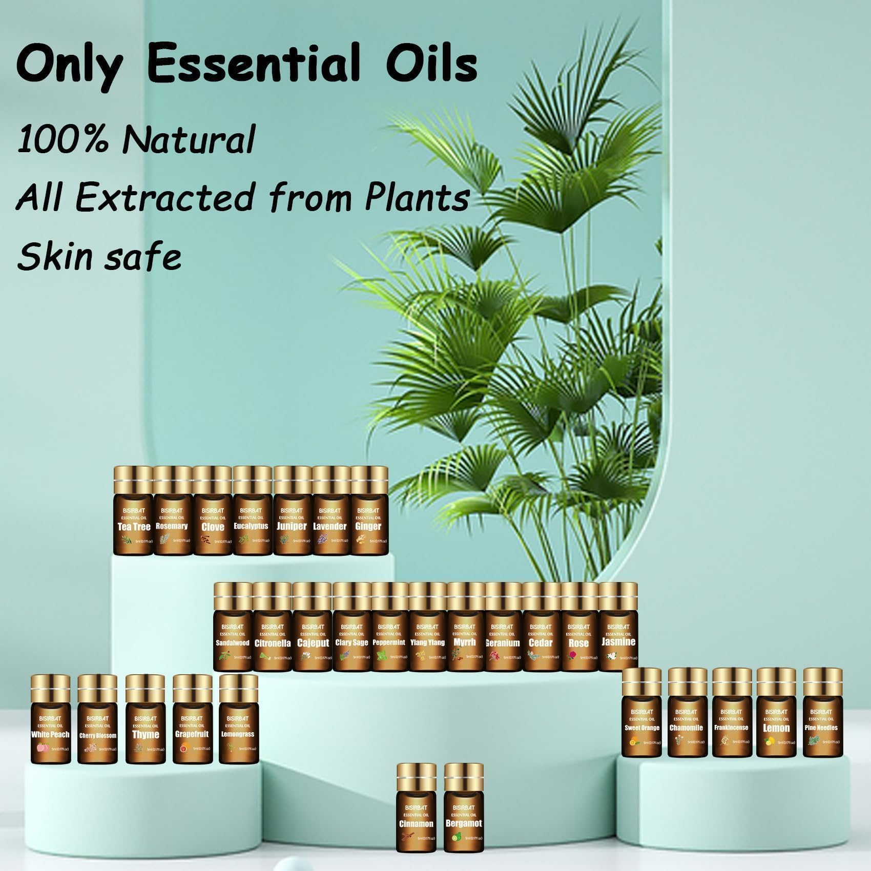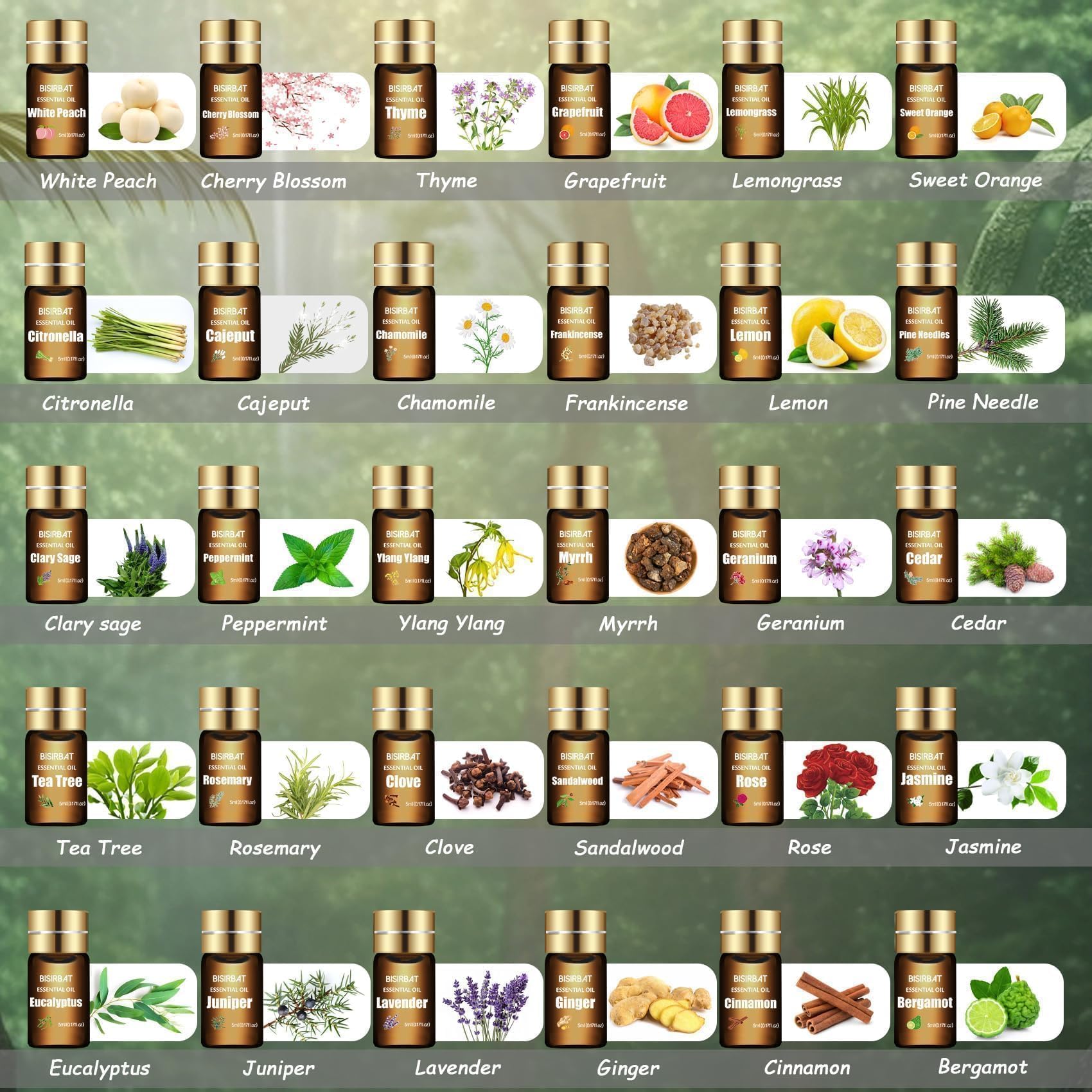 BISIRBAT 30 Aromatherapy Oils Set - Essential Oils for Diffuser, Air Freshening,Aromatherapy,Humidifiers,Massage, Candle&Soap Making, Laundry (5ml)