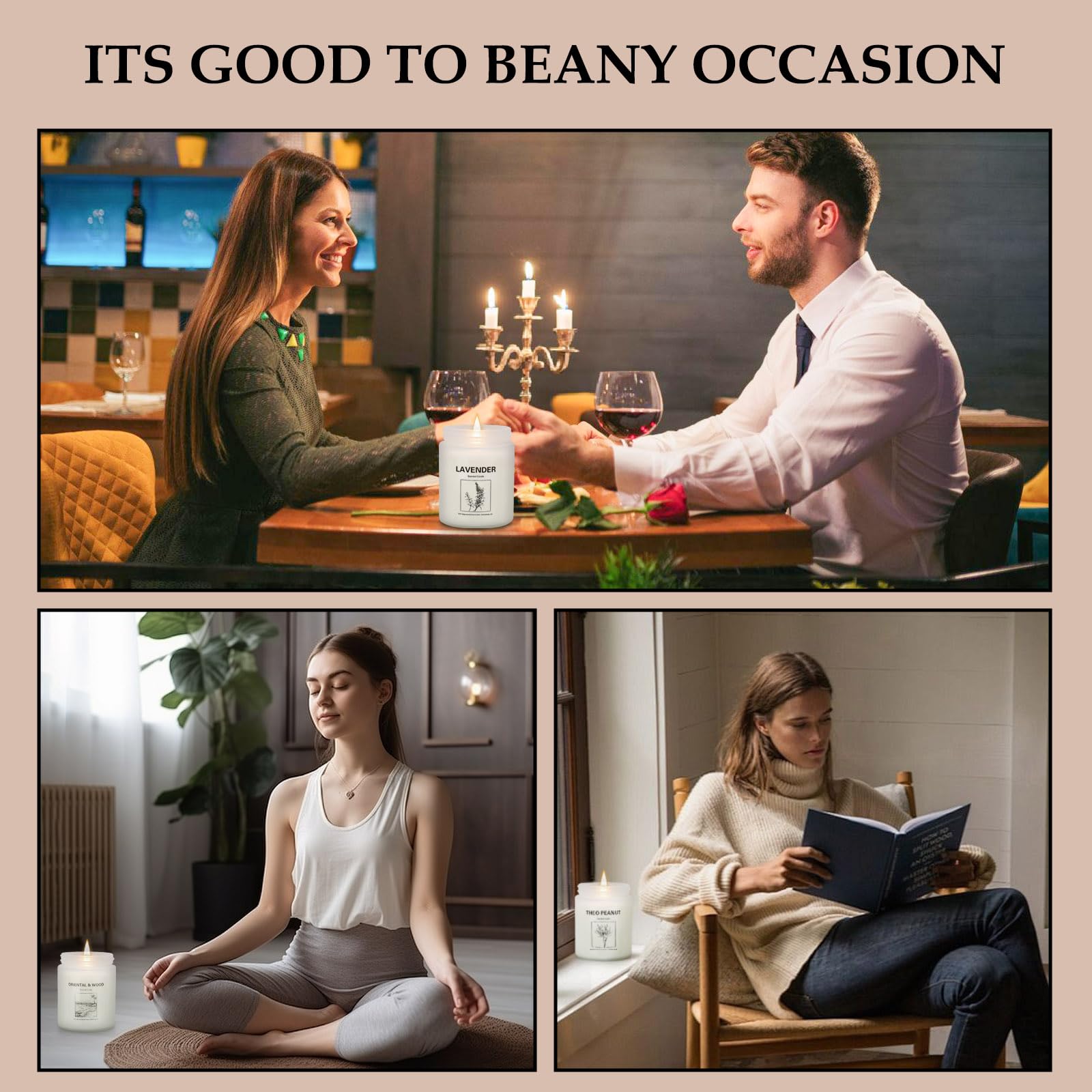 • Pleasant Scents:3Pcs Lavender + cactus blossom + oriental wood+ theo peanut are wonderful familiar aromas that bring a Relaxing and soothing effect,Let Your Stress Go In The House Warming Fragrance Of Our Lavender Candles,Allowing you to relax, improve sleep quality and relieve stress.