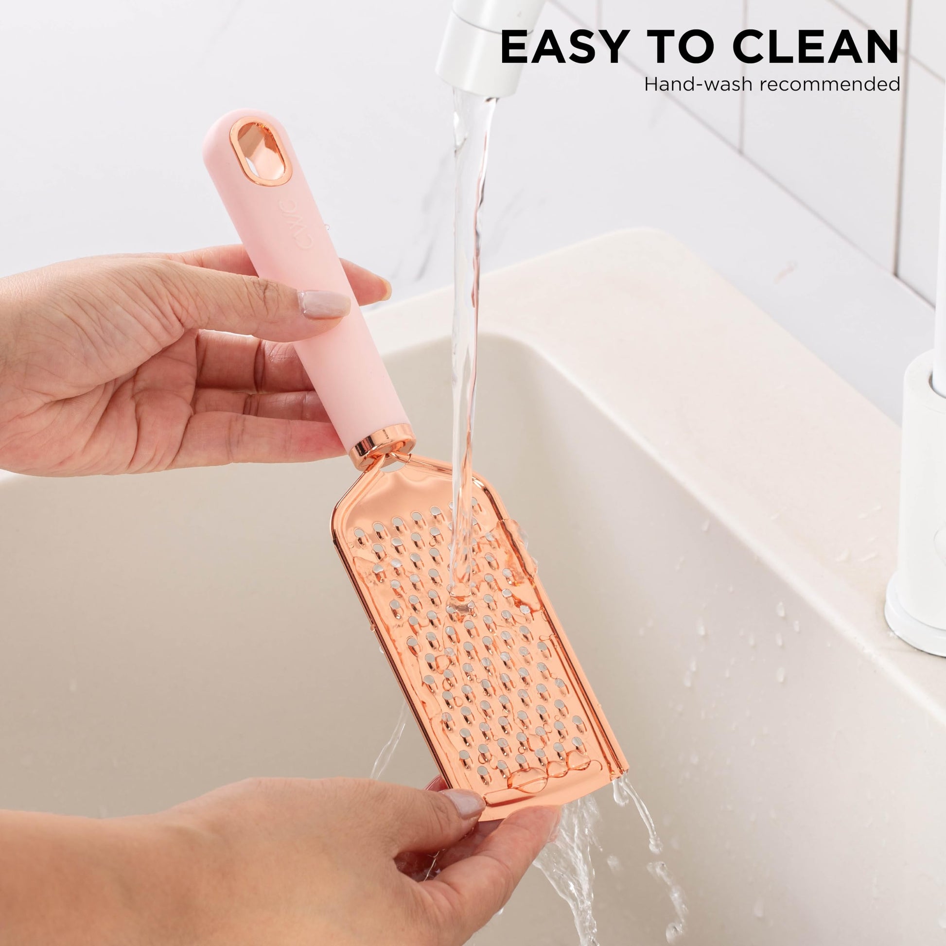- copper plated stainless steel gadgets with comfortable, soft touch, good grip, non-slip handles that absorb pressure and make it easier on your hands.