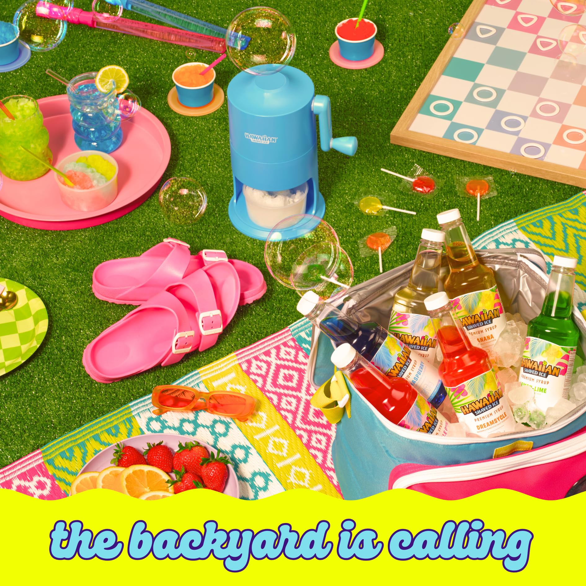 Hawaiian Shaved Ice Machine Kit - 3 Flavors, 25 Cups, Straws, Pourers, Ice Molds