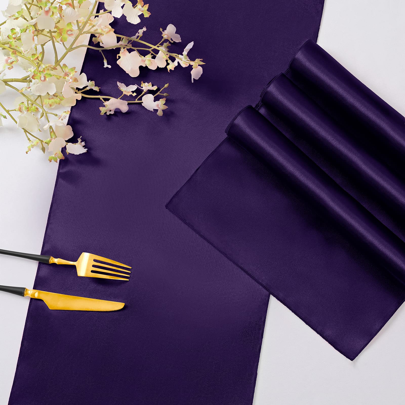 - ❤Practical Party Decoration: Package includes 12 pack of purple table runners, enough quantity for your need. Measured about 12' x 108', the satin table runners is long enough to fit rectangle and round tables that can seat 8 to 16 people. Thes silky and lustrous table runners make your parties elegant and top-end.