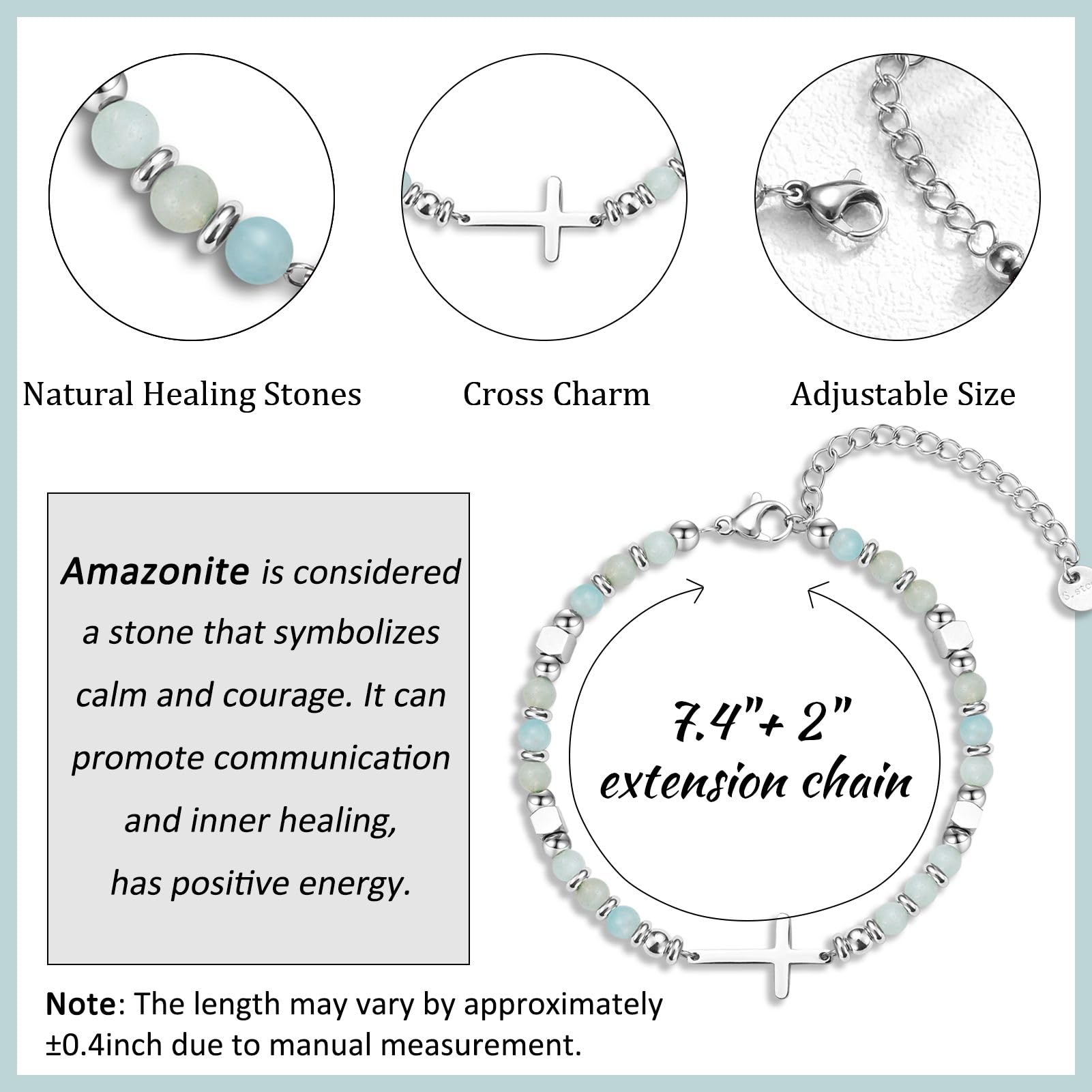 - Material: IKIATY religious cross bracelet is handmade with highly polished 316L stainless steel beads, cross and 4mm natural stones, which helps to bring protection, healing and good luck.