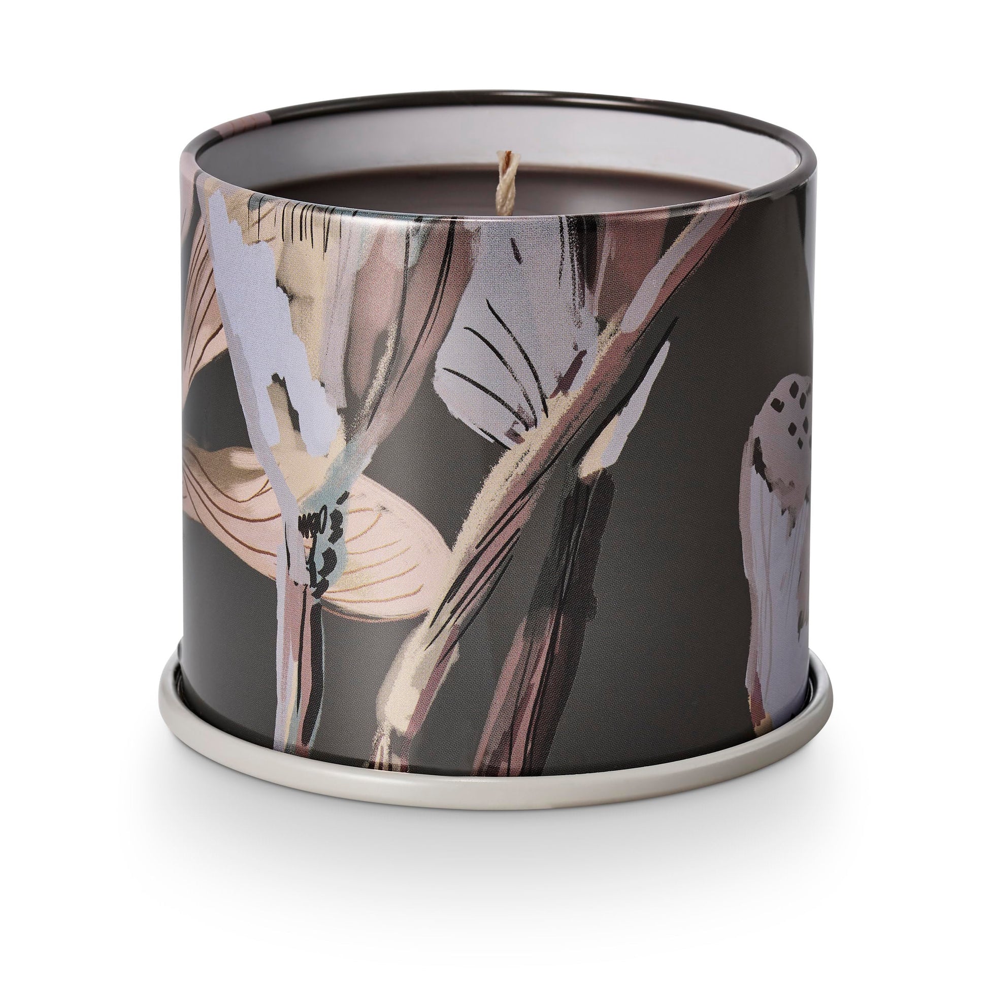 Details: The shine and glamour of our beloved Noble Holiday collection is now fragranced for fall. Complement nature's stunning show with fragrances that inspire cozy sweaters and crunchy leaf walks. Designed as a pop of pattern, our vanity tins have a full wrap label on textured stock, interior pattern with metallic details, and a color rolled edge to complement the colored wax. We use tin for its lovely illuminating qualities and because it is infinitely recyclable.