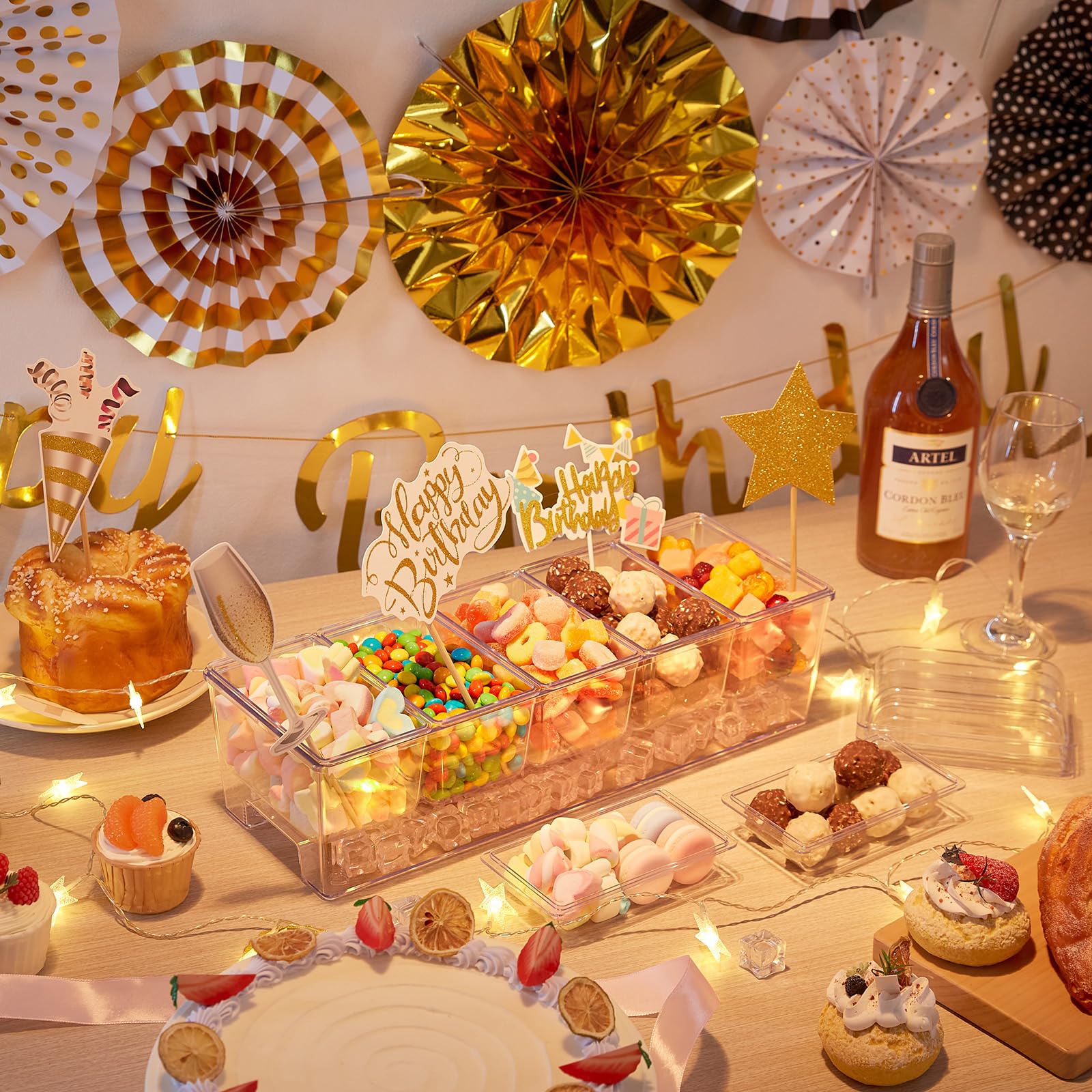 - Preserve Freshness: The lower compartment of the condiment caddy can hold ice cubes or crushed ice to keep vegetables, sauces, or fruits fresh and succulent for hours. Each top compartment has a removable lid for easy food access, preventing flavor contamination and ensuring cleanliness and quality preservation when closed.