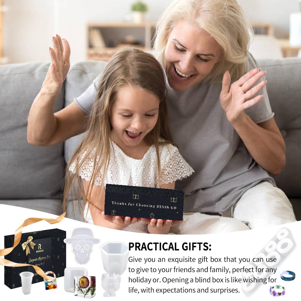 Resin Go 500G Random Resin Molds,Mystery Box Silicone Molds for Epoxy Resin,Blessing Bags Blind Box Moldes De Silicona para Resina,Contains Pendants,Coasters,Trays,Letters and Other Random Moulds