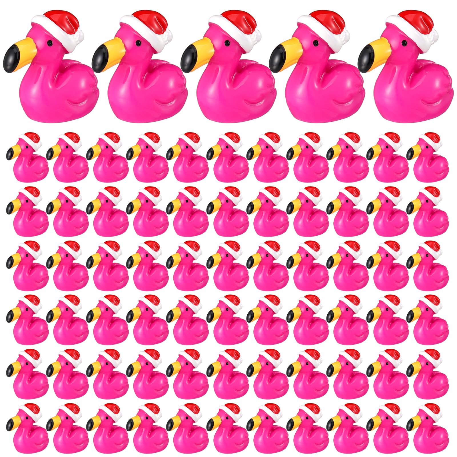 A Christmas hat tops each flamingo tiny duck, enhancing the festive spirit in your decorations. These playful accessories not only capture attention but also add a seasonal touch that makes them ideal for holiday-themed projects or as fun stocking stuffers.